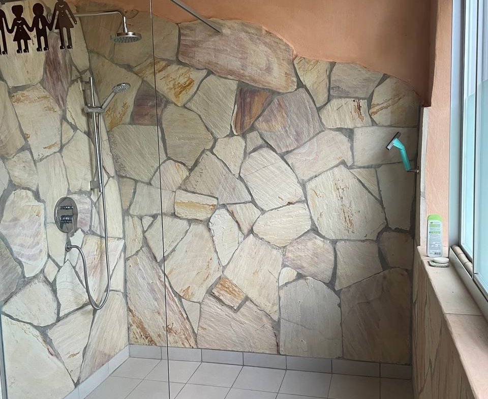 - Piscina de agua salada (10 × 3 m) con Ducha de piedra natural iluminada