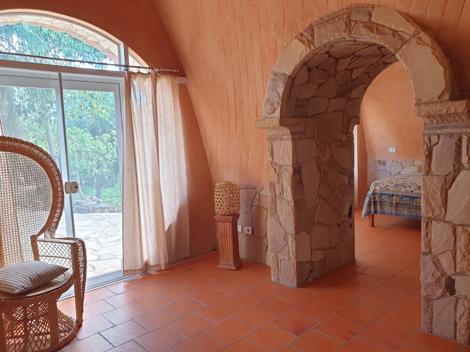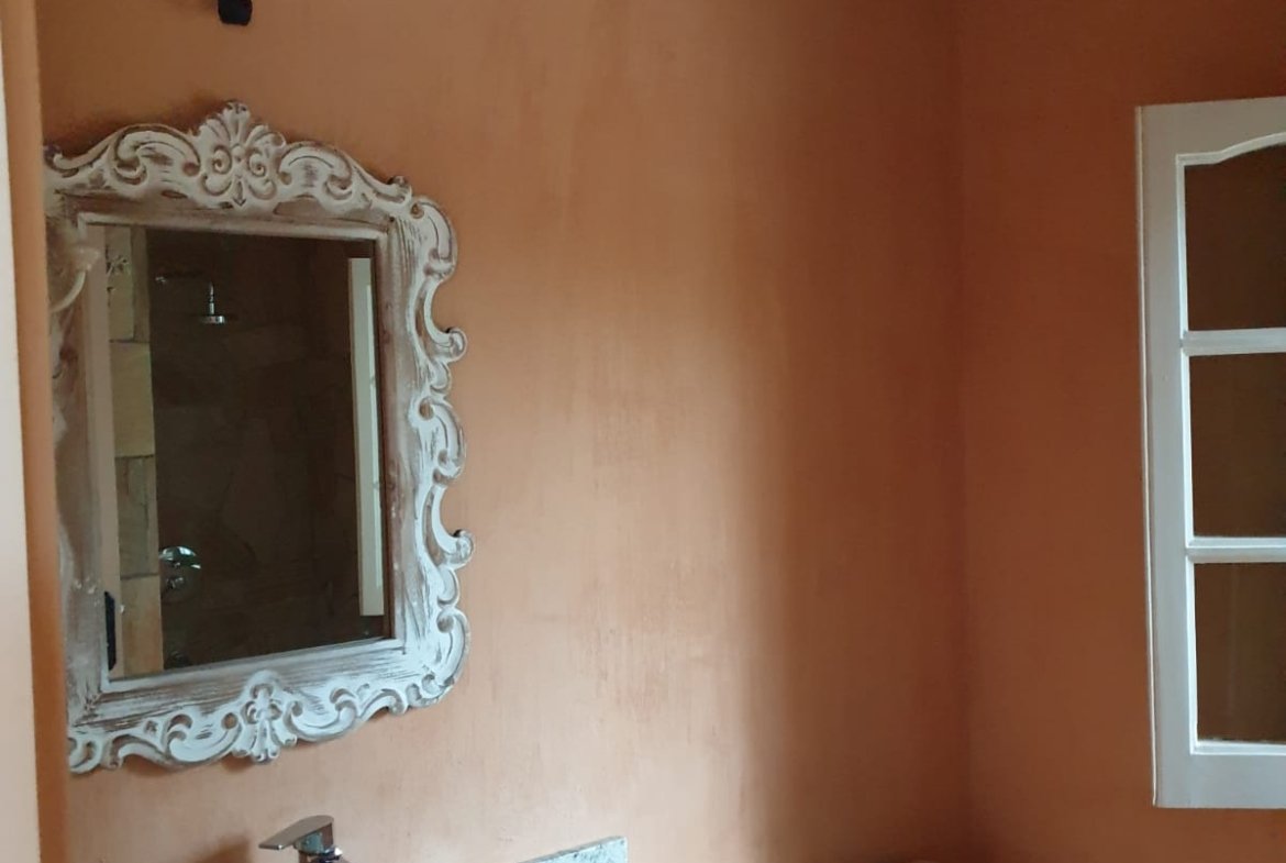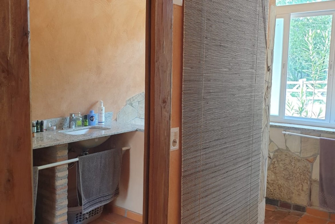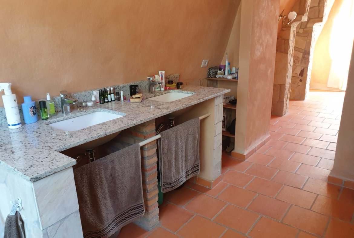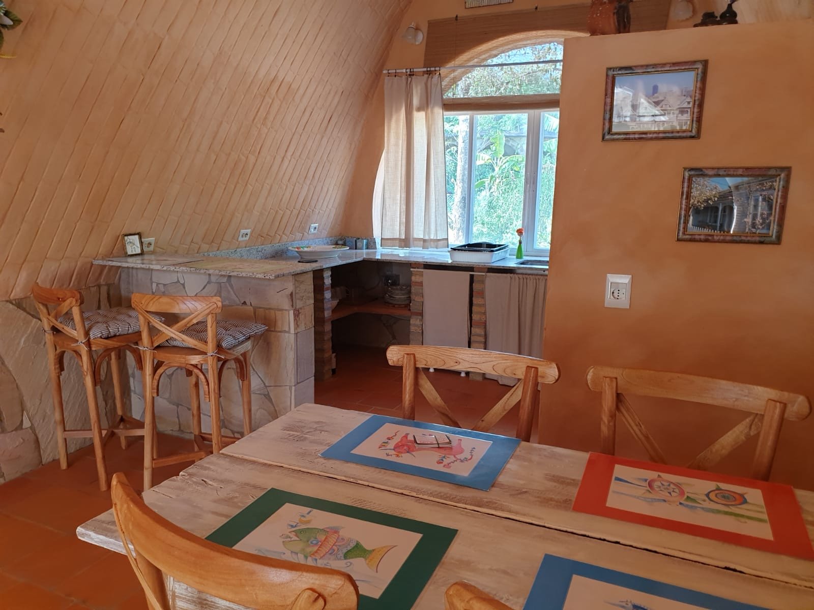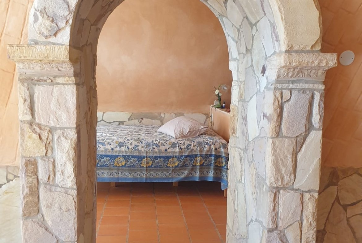 A casa foi construída como um edifício de terra com um telhado verde e impressiona por suas formas orgânicas, elementos de pedra natural e cores quentes. Os materiais naturais de alta qualidade e a carpintaria personalizada conferem à propriedade caráter, qualidade e durabilidade.